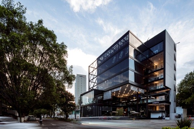 Estructura de marcos sismo-resistentes de acero con diagonales, 6 niveles y 2 sótanos, 4,200m².